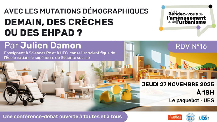 Les Rendez-vous de l’aménagement et de l'urbanisme vous sont proposés par AudéLor et le Master AUTELI de l'Université Bretagne Sud.